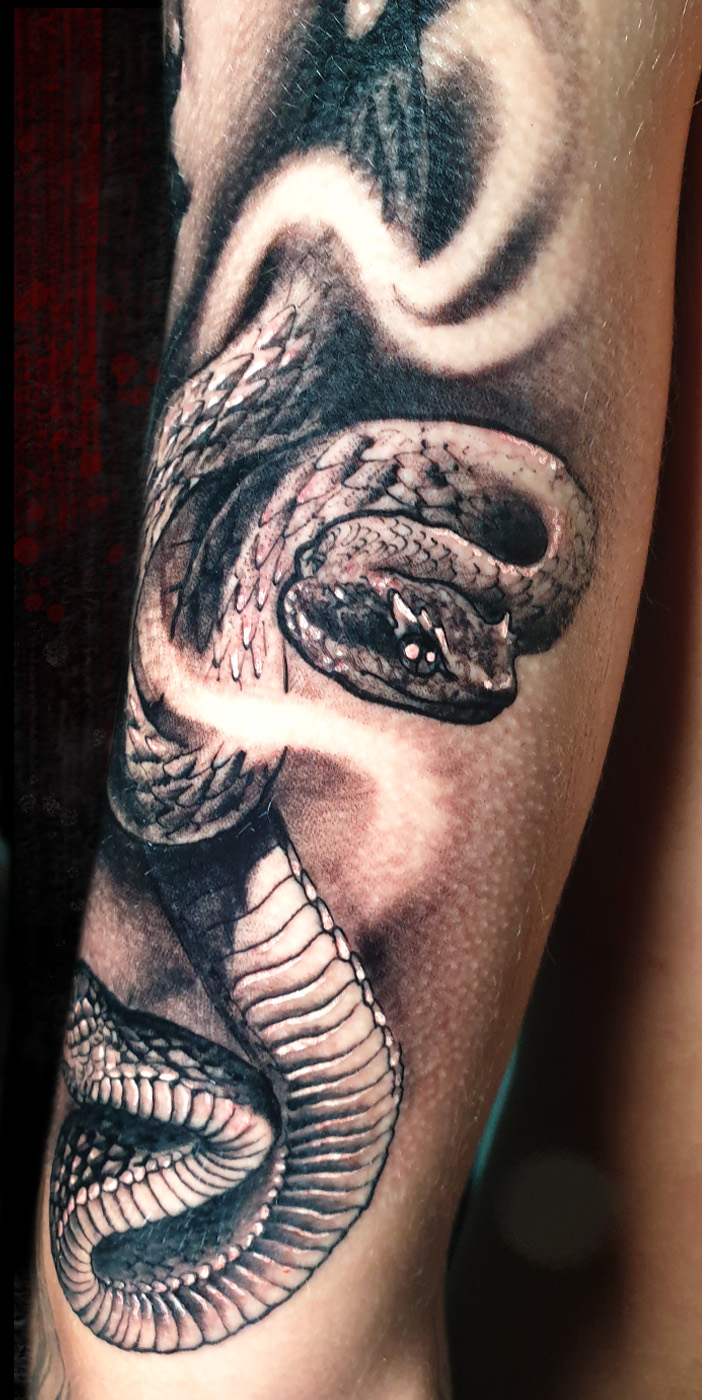 Medusa, the classic feminine character with a bunch of snakes flowing arround her head. It was done in one session, around 7 hours long, at Drive...
