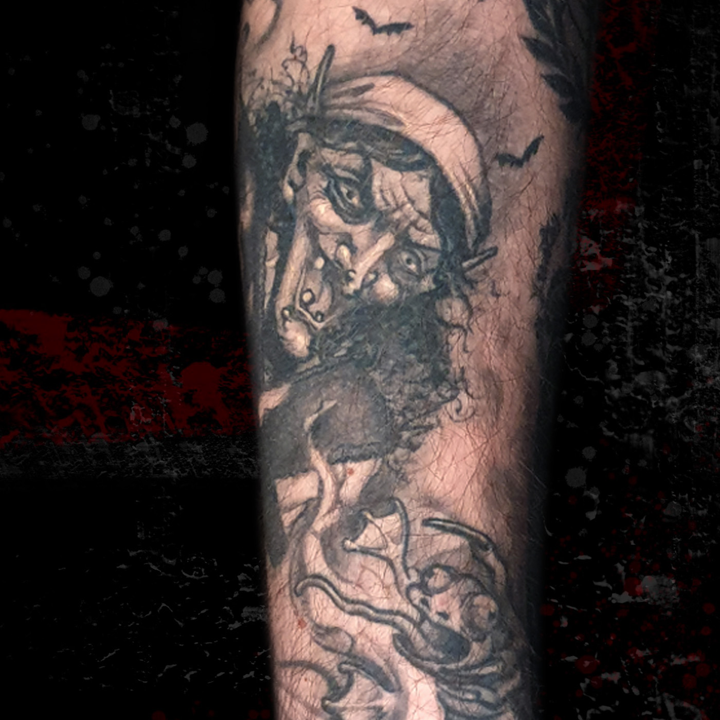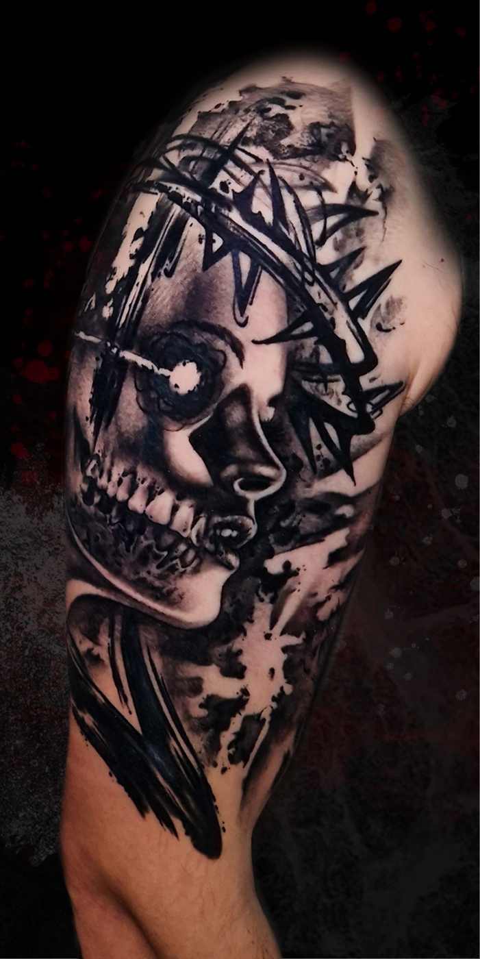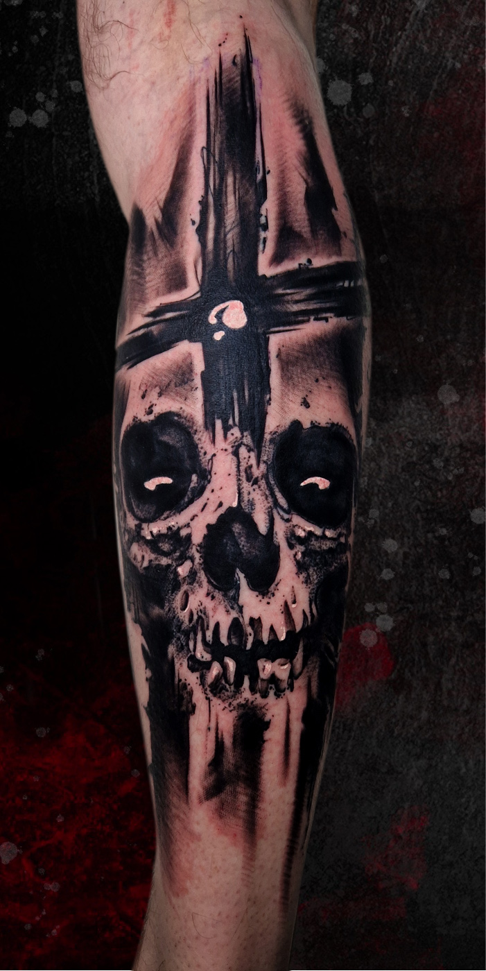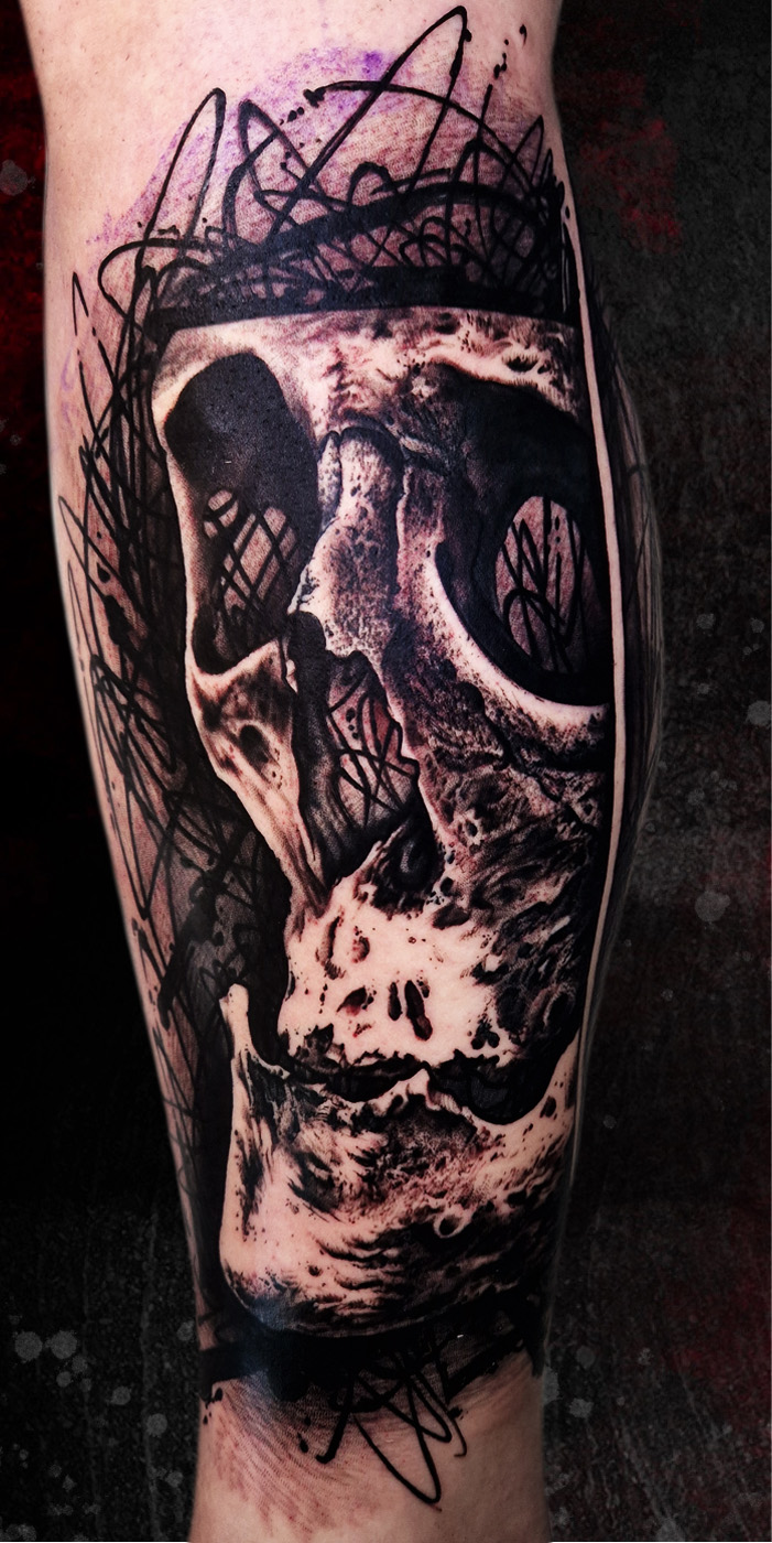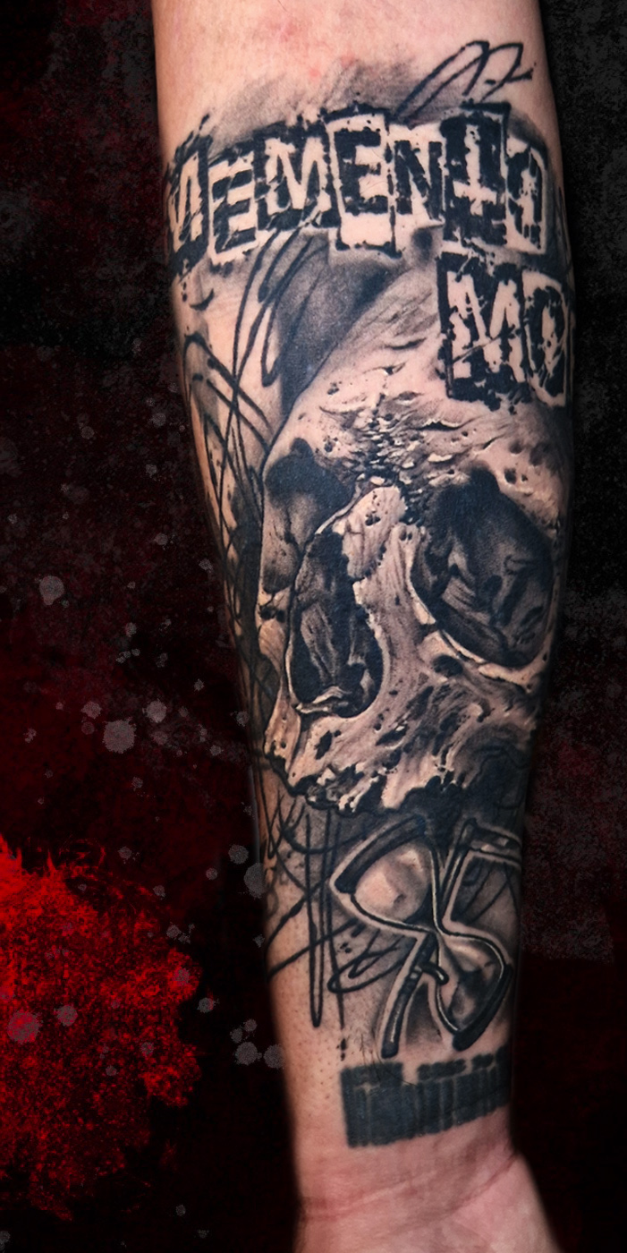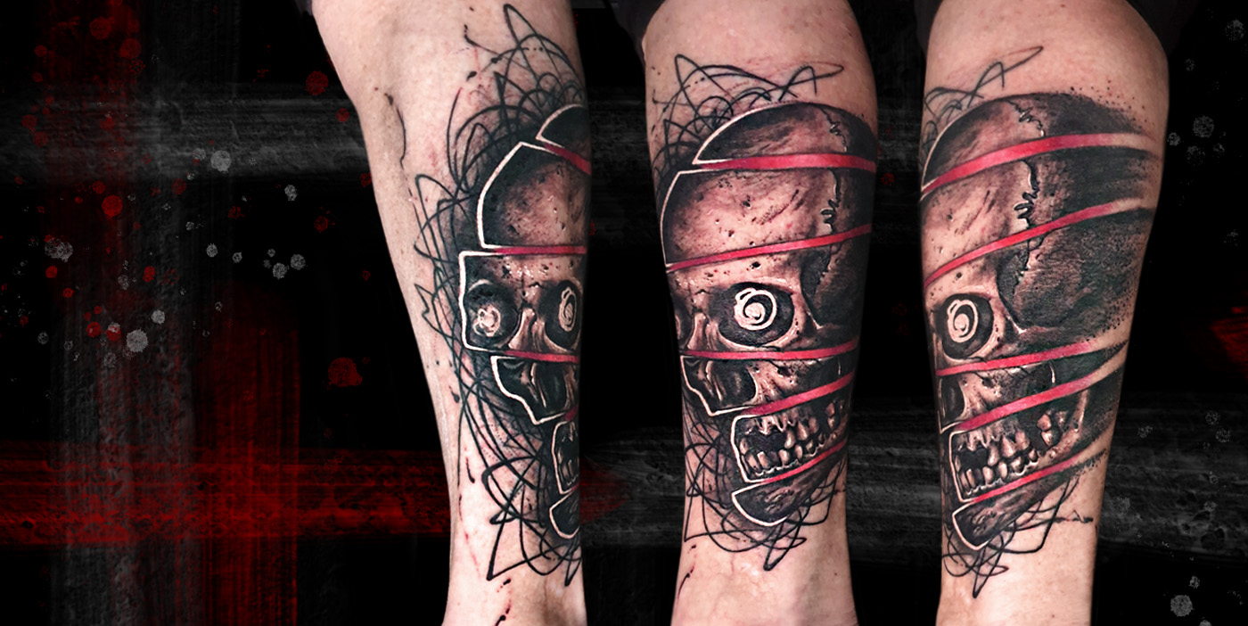 Black and grey skull with some red and lines background. This costumer chose one of my "wanna do" designs. Done in one of my trips at...