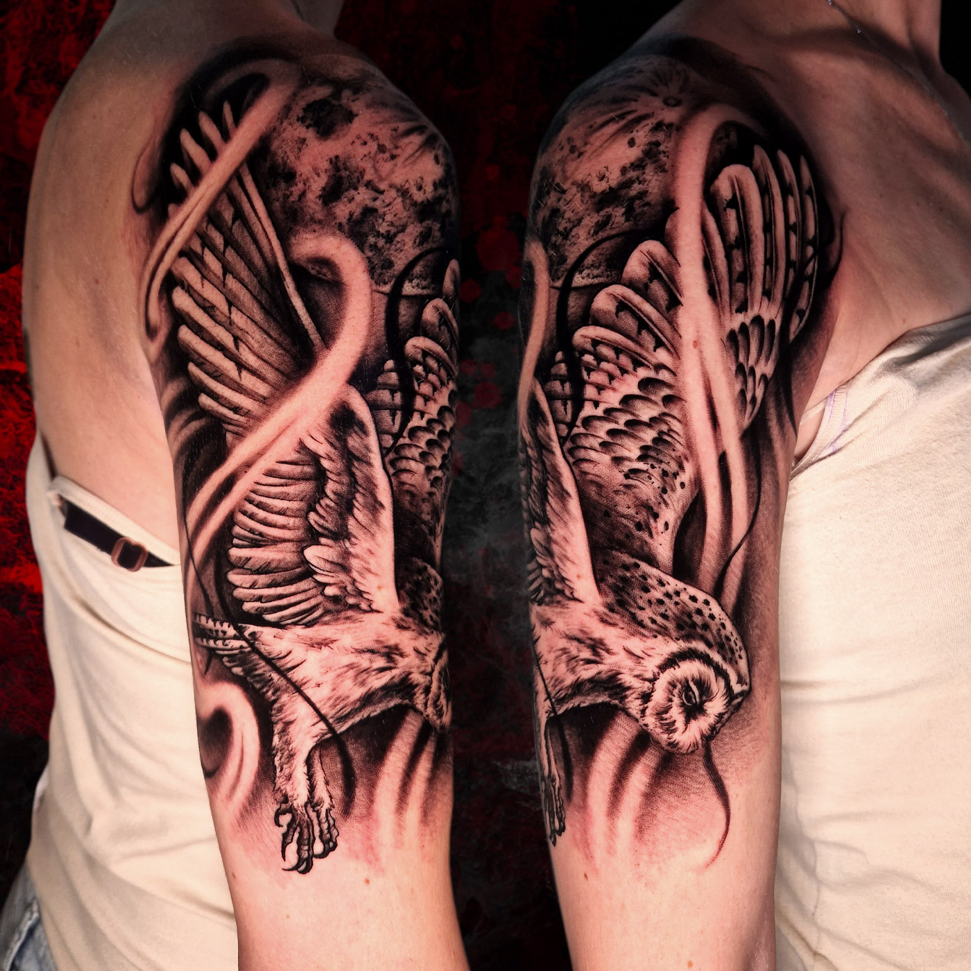 Phoenix bird, done in 3 sessions. This tattoo takes a good space in the arm, between other existing small tattoos. Freedom to make a good...