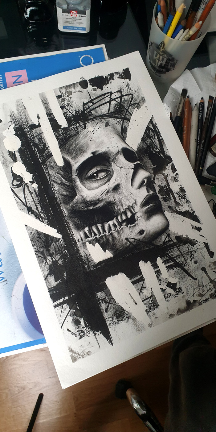 [vc_row][vc_column][vc_column_text]Charcoal and graphite on Schoeller paper, 20x50cm. Realistic black and grey drawing. The background plays a starring role in this piece because of it´s textures...