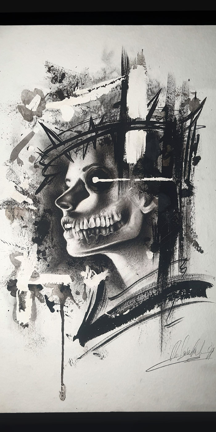 First drawing of this series of faces and abstract stuff. Mixed media: ink, graphite and charcoal on paper. 35,5x45,5cm. In this kind of drawings I let...