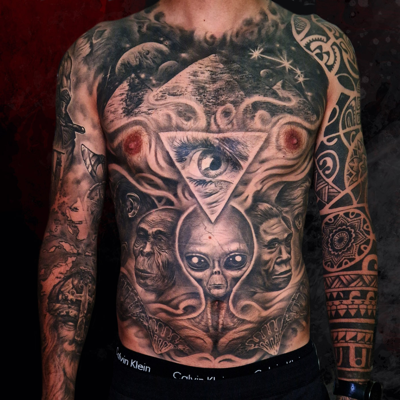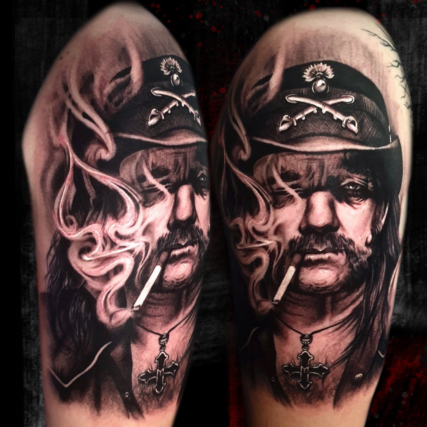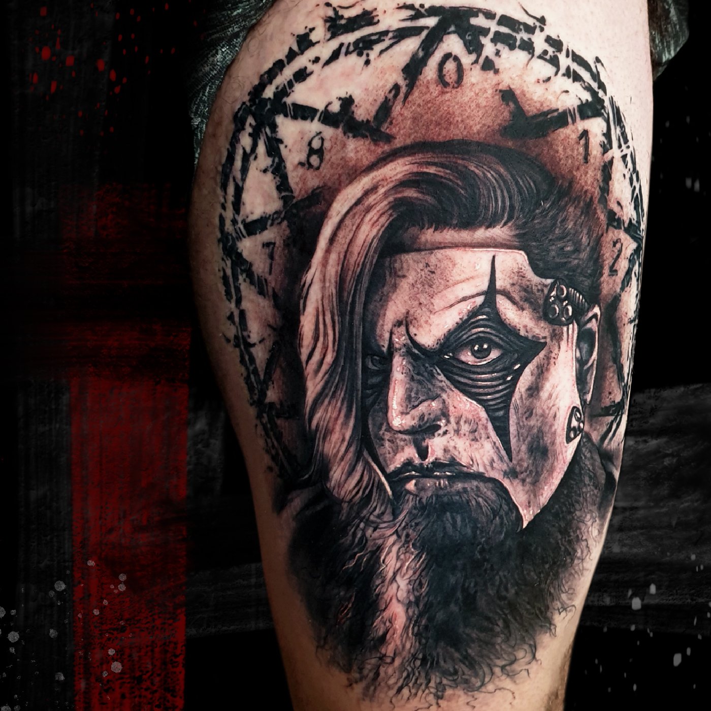 Little black and grey horror tattoo. In the pictures you can see the fresh and healed tattoo....