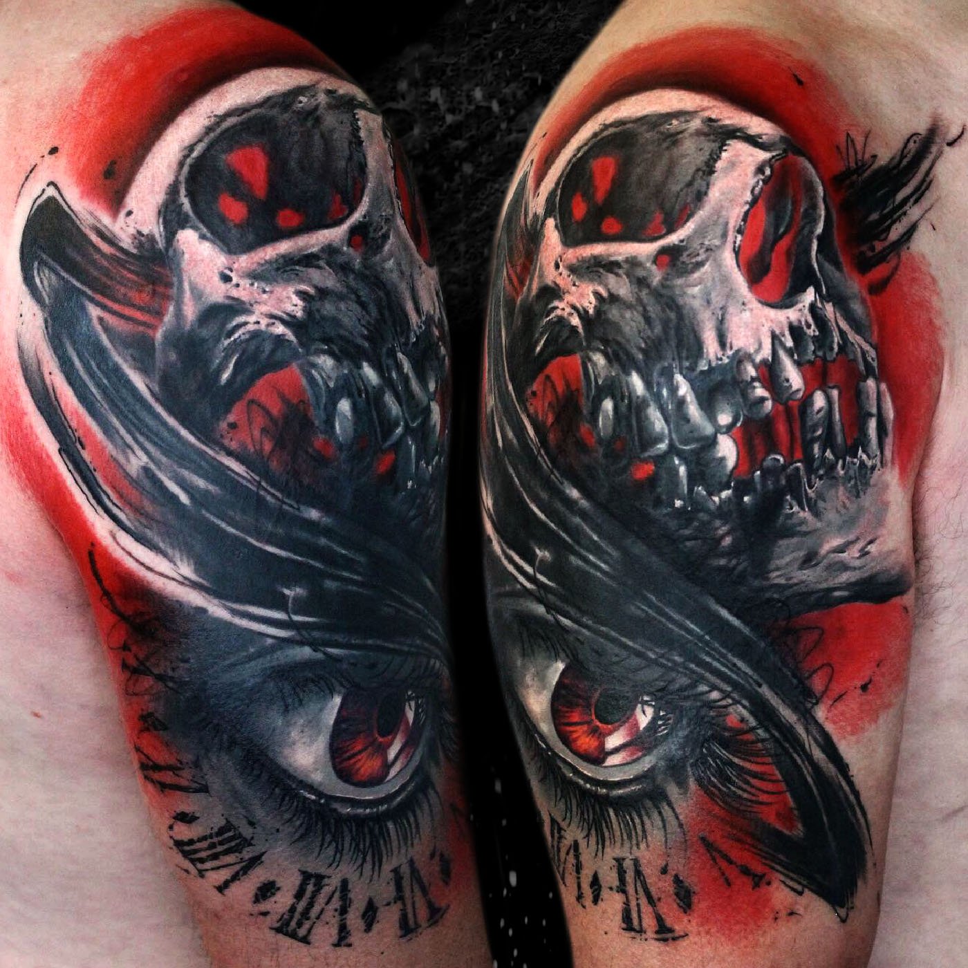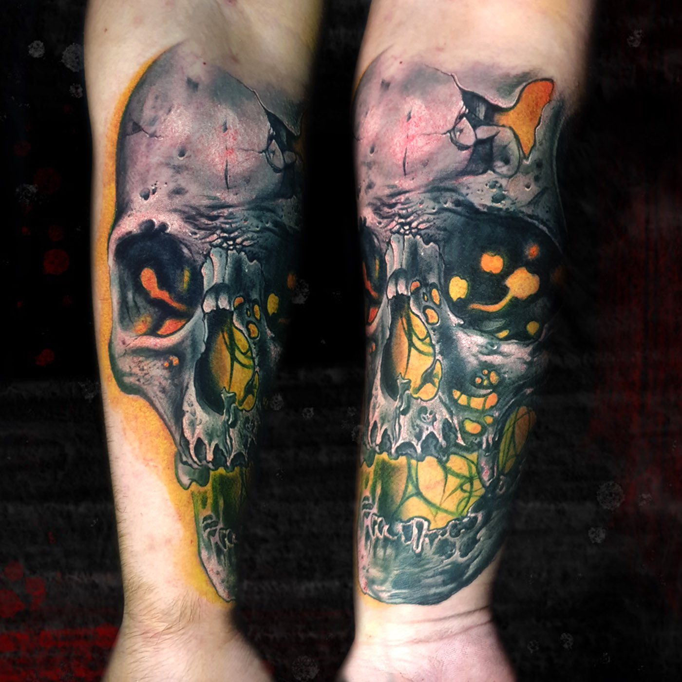 Cover up of an old tribal tattoo with a color skull. As I always do, I tried to make most of the light areas and...