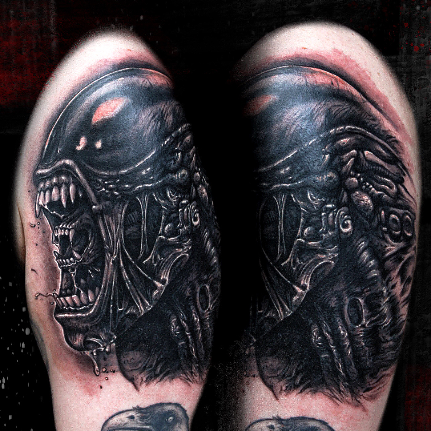 [vc_row][vc_column][vc_column_text]This costumer was not happy with his old tattoo, so we did a cover up. This tattoo is part of a horror character themed sleeve,...